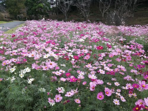 梅園の坂を下った先ではコスモスが見頃になっています。香りは程々、ほのかに漂ってきます。このコスモスを背景に写真を撮っているお客様がたくさんいらっしゃいました。