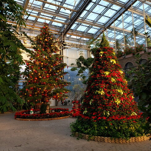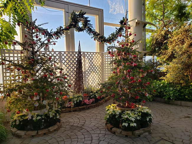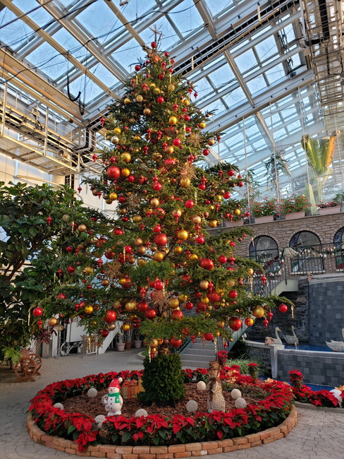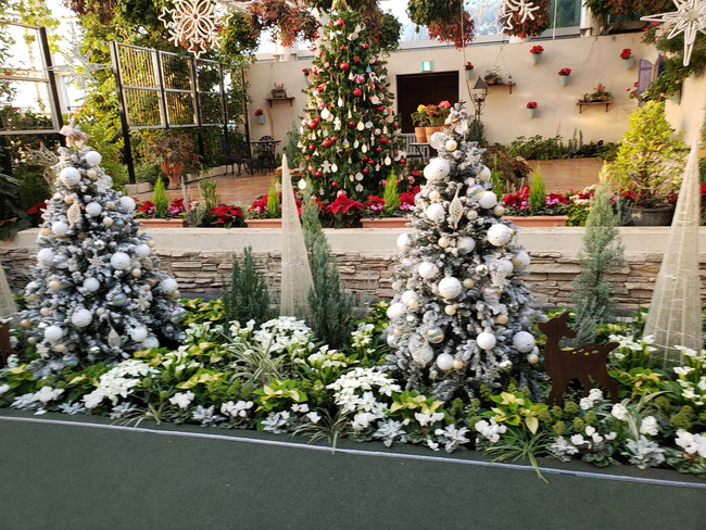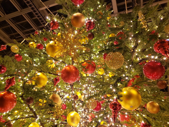 今年も高さ約8mのモミノキ大ツリーとたくさんのポインセチアで彩られた高さ4.5mのポインタワーがあります。