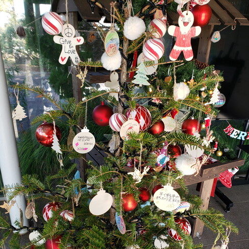 全国のこどもたちから寄せられた平和を願うメッセージオーナメントで飾り付けられたツリーやガーランドが