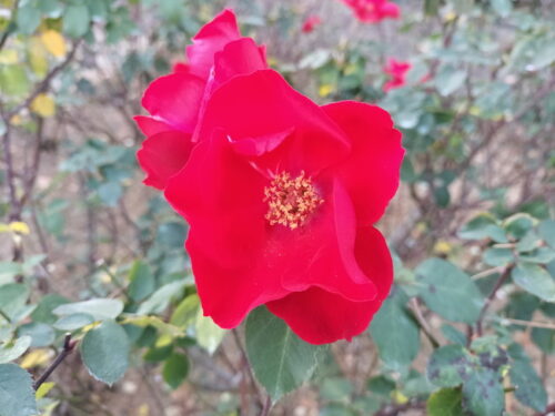 たまたま赤系のバラが目に留まりましたので、本日は赤系のバラたちと周辺の草花をご紹介いたします。