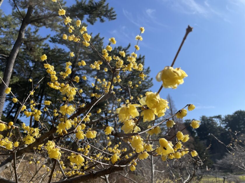 ロウバイ:ロウバイ園と早咲き桜園のそばを通ると甘い香りがします