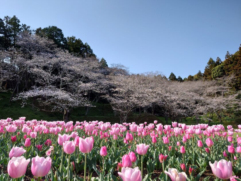 ここは谷いっぱいに咲くソメイヨシノと、チューリップを同時に楽しむことが出来ます。