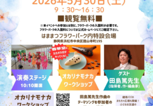 2026 オカリナフェスティバル in はままつフラワーパーク 5/30(土)全国のオカリナ愛好家の皆さんが、はままつフラワーパークに集結!一般愛好家やゲスト演奏者が、思い思いのステージを繰り広げま…
