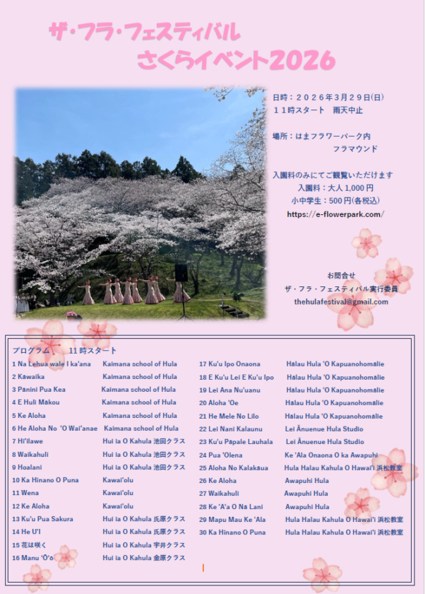 ◇お問い合わせ先ザ・フラ・フェスティバル実行委員会thehulafestival@gmail.com
