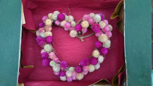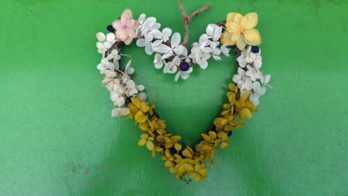 木の実やドライフラワーを使ったハート型のリースを作ってみませんか。15㎝から20㎝ほどのハート型のリースに木の実やドライフラワーを使って飾りつけします。【講師:パーク管理課 倉澤】