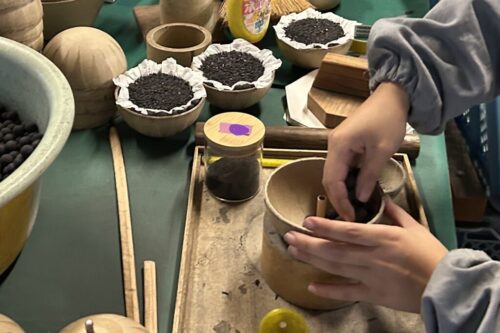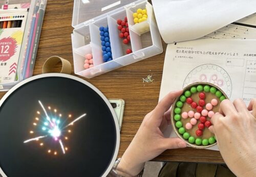 花火の歴史や仕組みを職人さんからお聞きして、自分だけのオリジナル花火デザインを制作します。実際の花火玉をイメージした「星ならべ」では、打ち上げ構成を体感。