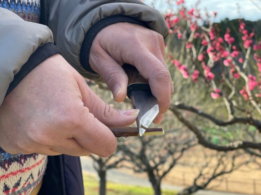 春、空へ向かってまっすぐに伸びていく梅の剪定枝を使ってお箸を作りましょう! 今年は春の香りがする手作りMy箸とお弁当を持って、お花見へおでかけしませんか?